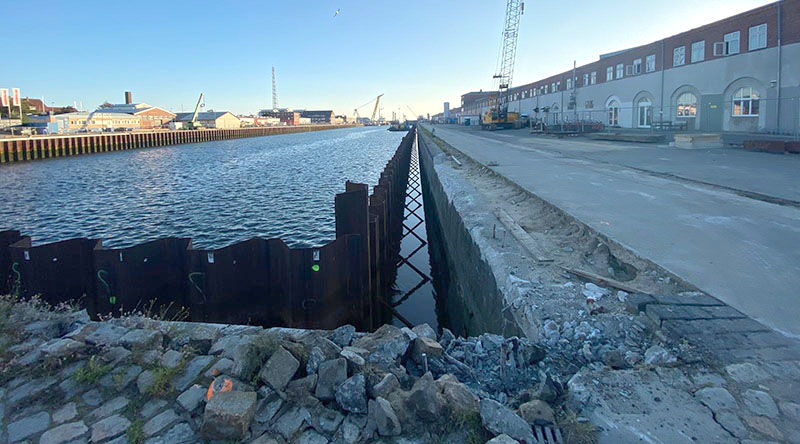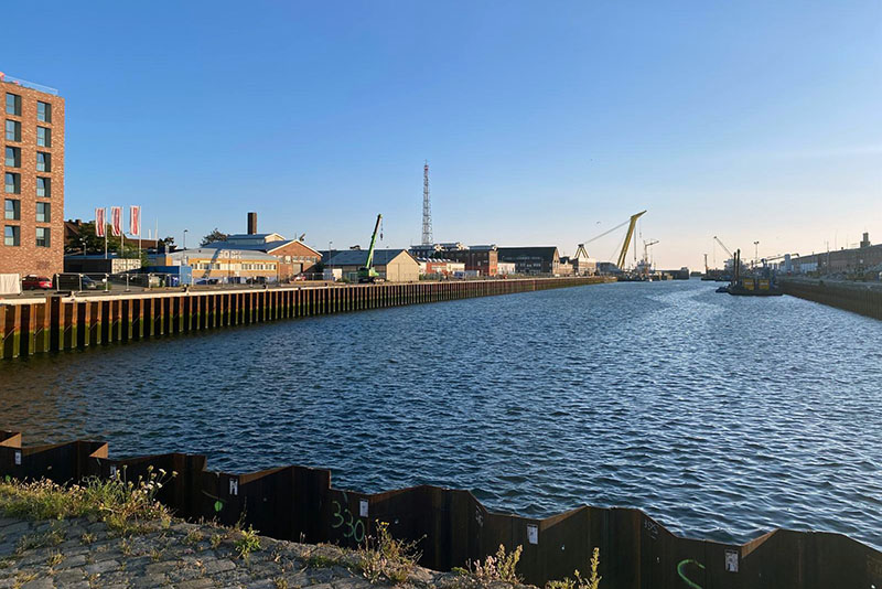 Hierzu wurde beschlossen, die neue Kaimauer als Energiespundwand auszubilden und die erforderliche Energie zur Beheizung des gesamten zu entwickelnden Quartiers „Alter Fischereihafen“ aus erneuerbarer Energie bereit zu stellen.